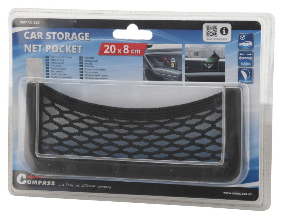 Praktický organizér s pružnou sieťkou. Vrecko zabezpečí priestor pre drobnosti, ktoré potrebujete mať vo vozidle po ruke (pr. telefón, kartu, ceruzku,