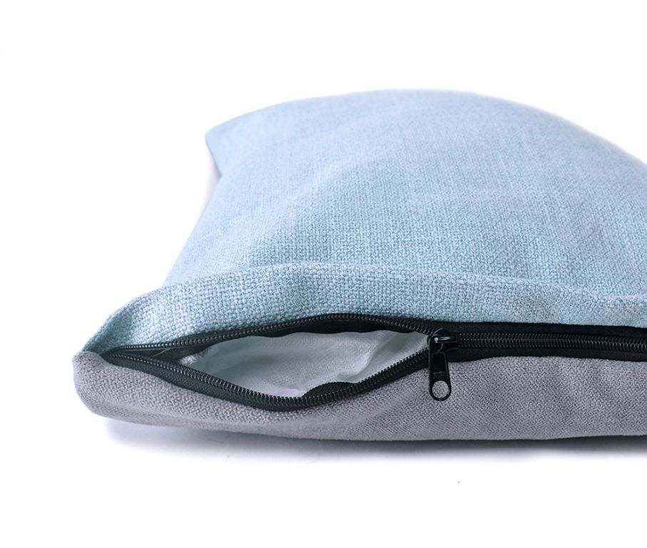 Luxusný pelech s vyberacím vnútorným vankúšom. Pelech z odolnej a pevnej tkaniny v béžovej farbe. Vyberací obojstranný vankúš so zipsom. Z jednej strany modrá tkanina a z druhej strany jemnejšia šedá textília. Možno prať v ruke alebo v práčke na šetrný program, maximálne 30 ° C. Nečistiť chemicky, nesušiť v sušičke. Protišmykové dno a výplň z dutého vlákna.