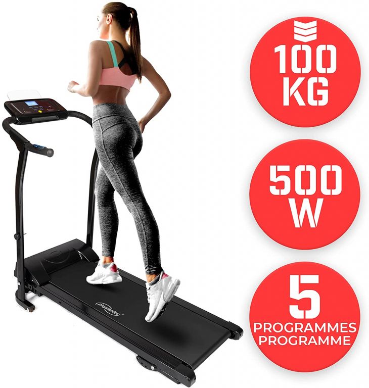 S naším bežeckým pásom si môžete nastaviť vlastné tempo cvičenia v pohodlí domova. S 500W motorom a rýchlosťou až 10 km / h je tento bežecký pás viac než dostačujúci na udržanie Vašej kondície. Vďaka ľahko ovládateľnej LED obrazovke, držiaku na tablet a dokonca dvom vstavaným reproduktorom bude Vaše cvičenie nielen efektívne, ale aj príjemné.