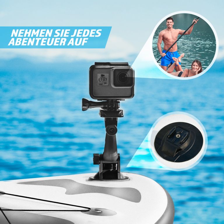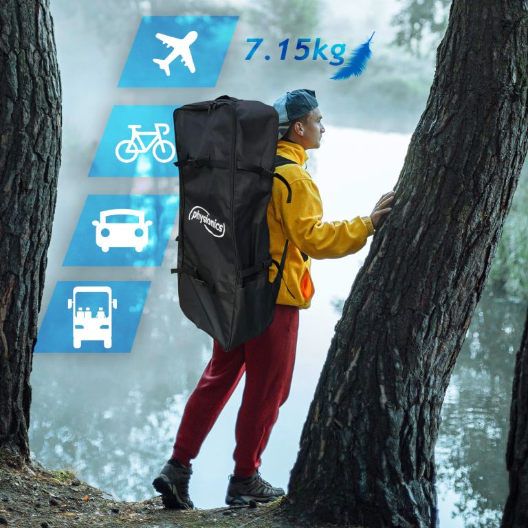 Paddleboard je vyrobený z materiálu PVC. Jeho hlavná doska je zosilnená technológiou Drop-Stitch. Drop-stitch je spojenie dvoch vrstiev tkaniny (PVC, Nitrilon) tisíckami a tisíckami vlákien z nylonu. Vďaka tomu nahusto umiestnené vlákna zaručujú, že materiál sa po nafúknutí nevyduje, ale drží tvar. Vďaka priehľadnému oknu môžete sledovať krásu podvodného sveta. Na doske tiež nájdete sedadlo, tri plutvy, praktickú rukoväť, protišmykovú a mäkkú EVA penu. Pre ľahké premiestňovanie máte k paddleboardu praktický batoh. Na rozdiel od mnohých iných modelov je tiež opatrený držiakom kamery na hornej strane dosky pre všetkých, ktorí chcú natáčať svoje dobrodružstvá. Dodáva sa s výsuvným dvojitým pádlom, bezpečnostným lanom na členok, ručnou pumpičkou, batohom, vodeodolnou taškou a súpravou na opravu.