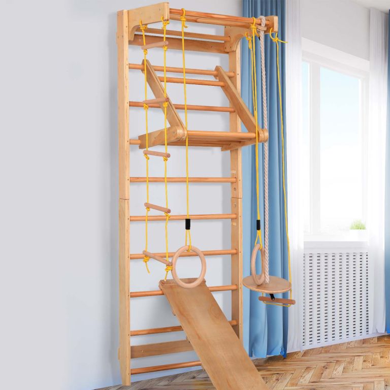 Rebriny s príslušenstvom je cvičebná stanica, ktorá je vhodná pre deti aj dospelých. Sada je vhodná pre deti od 3 rokov a pod stálym dohľadom dospelých. Rebriny sú ideálne na použitie doma, v škole a vo fitness štúdiu. Možno ich dokonca použiť ako pomôcku pri fyzioterapeutických ošetreniach.