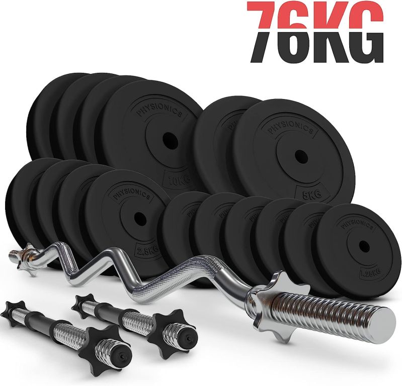 PHYSIONICS Vzpieračský set so závažím, hviezd. zámky, 76 kg