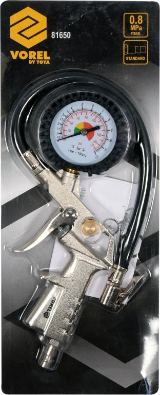 Pištoľ na hustenie pneu s manometrom je skvelým doplnkom pre autodoplnky a autopríslušenstvo. Pištoľ dokáže určiť tlak od 2,8 bar až do 10 bar.