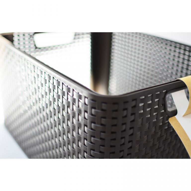 Plastový úložný box ratanového vzhledu od kvalitní značky Curver. Jednoduchá manipulace díky dvěma pevným úchytům ve výpletu, který zajišťuje cirkulaci vzduchu. Box je tmavě hnědé barvy a je bez víka. Možnost vrstvení boxů na sebe (vytvoříte úložný systém)