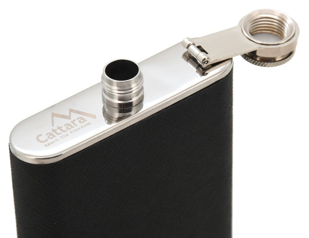 Uzáver je zaistený pred stratou a je klasicky skrutkovací s vnútorným tesnením. Telo z nerezovej ocele je navyše vybavené čiernym poťahom, vďaka ktorému sa ploskačka dobre drží a vyzerá lepšie ako bežné leštené ploskačky. Poťah navyše minimalizuje zanechávanie fľakov a odtlačkov prstov na oceľovom tele.
