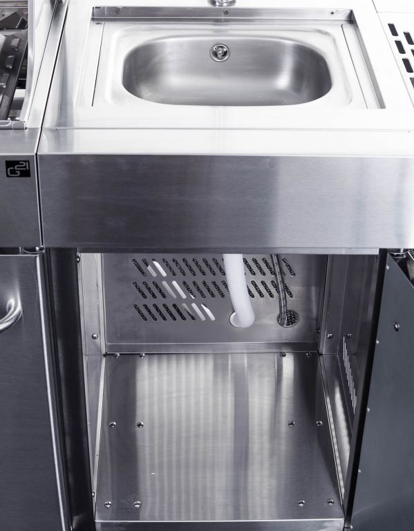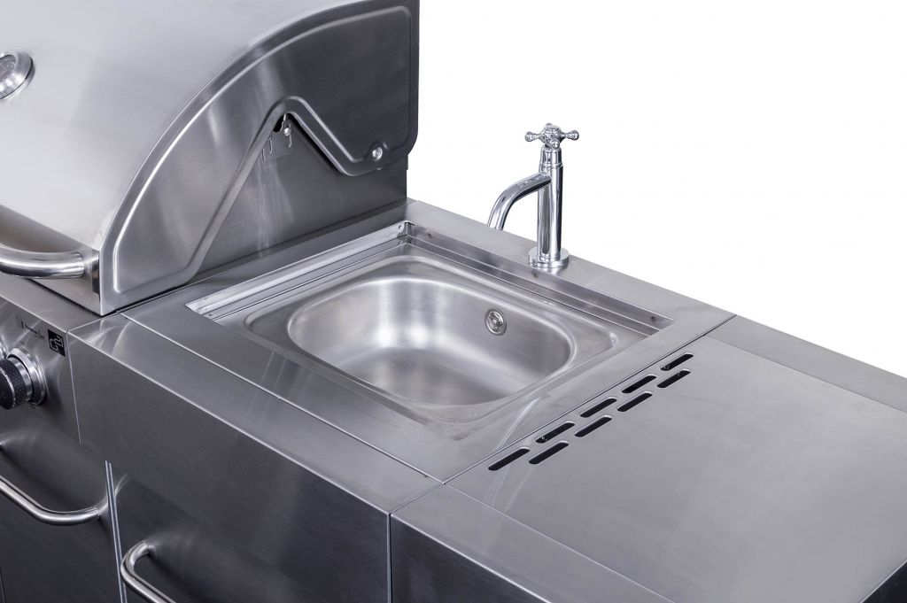 Čo nesmie chýbať v žiadnej kuchyni? Predsa drez. A ten nechýba ani pri grile G21 BBQ Arizona Premium line. Vstavaný drez má aj prívod na vodu zo záhradnej hadice. A po opláchnutí riadu drez len zakryte doskou a razom získate väčšiu pracovnú plochu na prípravu pochúťok na letné grilovanie.