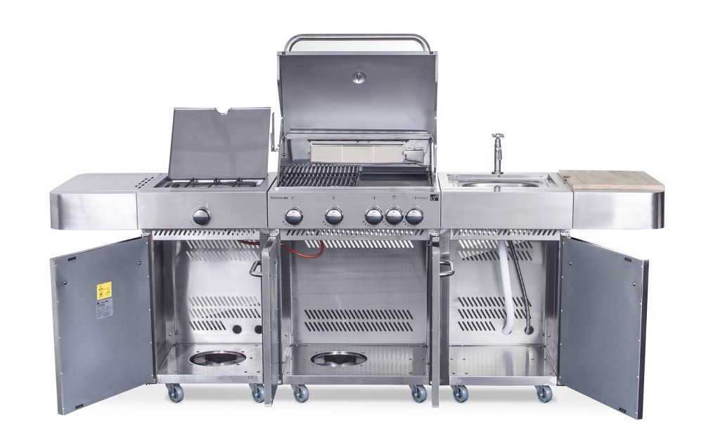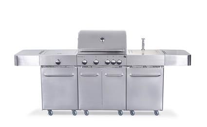G21 BBQ Arizona nie je len obyčajný gril, ale dokonalá záhradná kuchyňa, ktorej nič nechýba. Plynové horáky so systémom Flame Tamer, drez pre pohodlné oplachovanie riadu, priestranná pracovná plocha pre prípravu pokrmov i dokonale vyriešený úložný priestor.