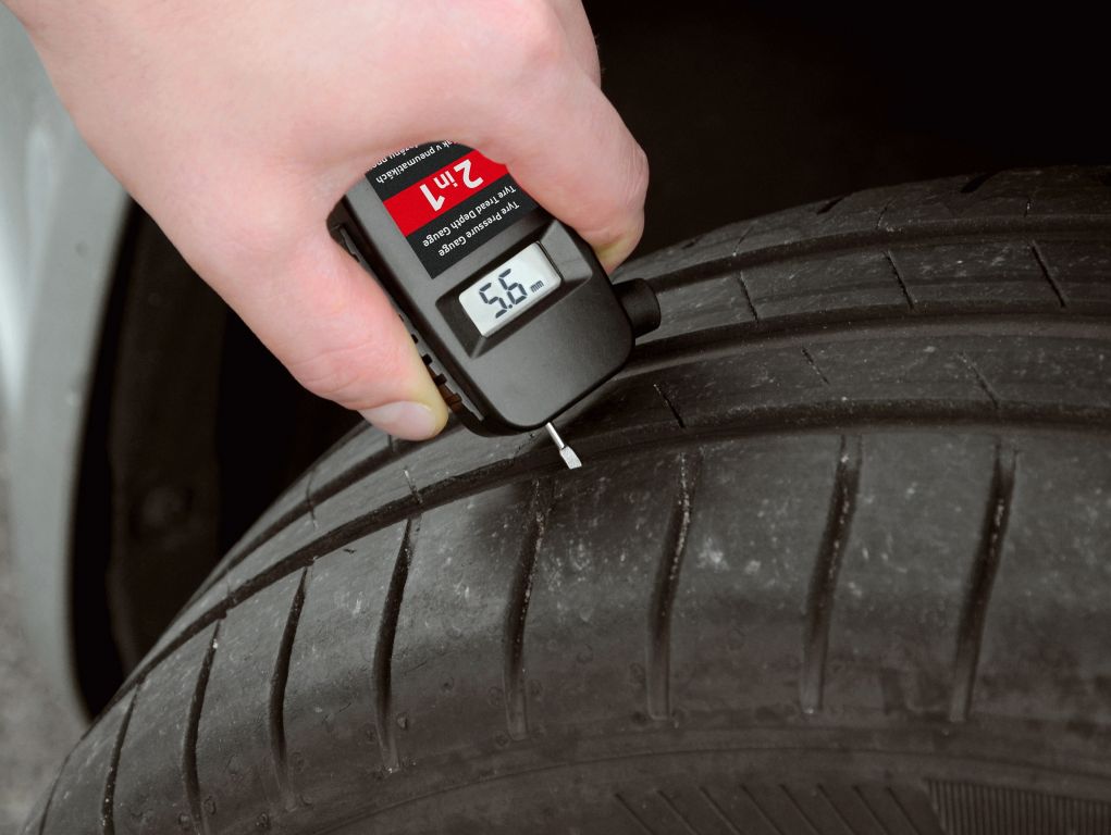Umožňuje meranie tlaku v pneumatikách až do 8 barov a zároveň dokáže digitálne zmerať hĺbku dezénu pneumatík až do 16 mm.