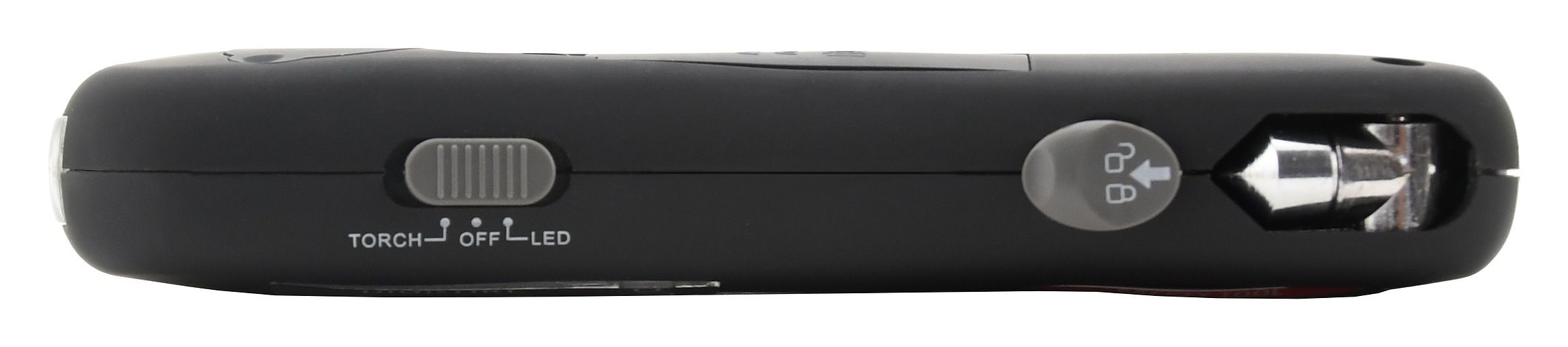 Merač sa hodí na akékoľvek cesty autom, odporúčame voziť stále v aute, napríklad vo vrecku dverí vodiča. Budete tak mať všetky potrebné nástroje vždy po ruke. Obsahuje kladivko na núdzové rozbitie skla.