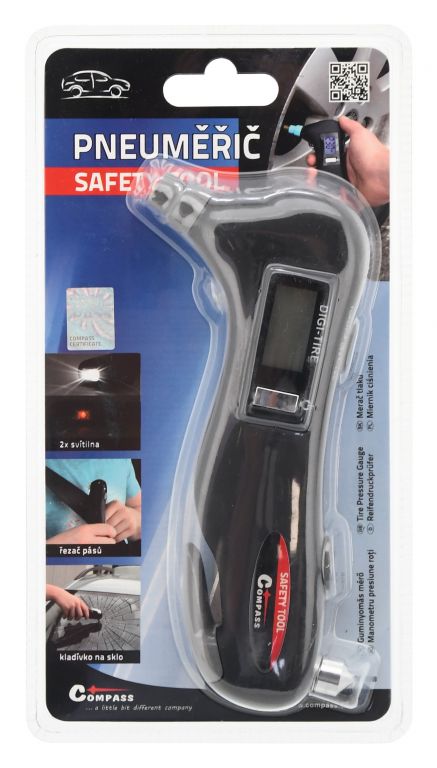 Digitálny pneumerač s celým radom bezpečnostných doplnkov pre núdzové použitie napr. pri dopravnej nehode. Ideálna kombinácia pomocníkov na cesty.
