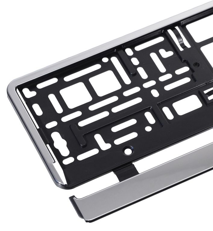 Návod na montáž: Oddeľte spodnú lištu v mieste výliskov (ak je súčasťou podložky). Namontujte podložku na vozidlo pomocou vhodných skrutiek. ŠPZ nasuňte do spodnej strany podložky. Spodnú lištu pomocou zámočkov nacvaknite do podložky tak, aby pevne držala ŠPZ v podložke.