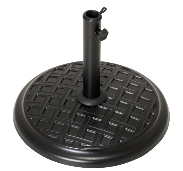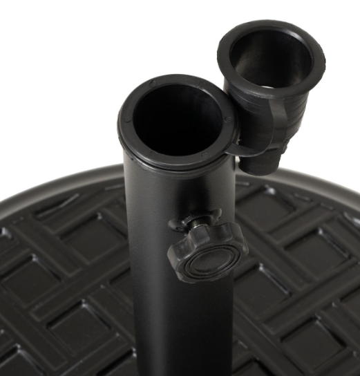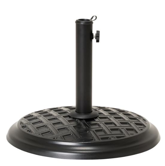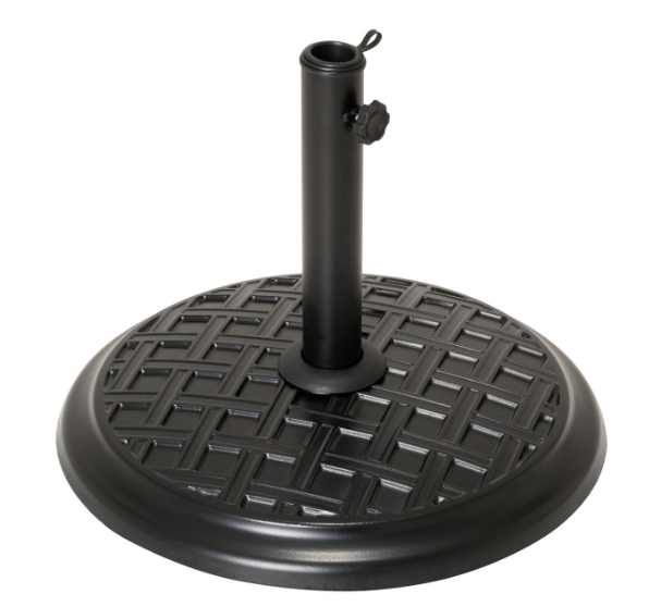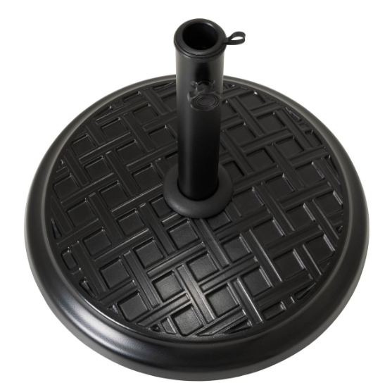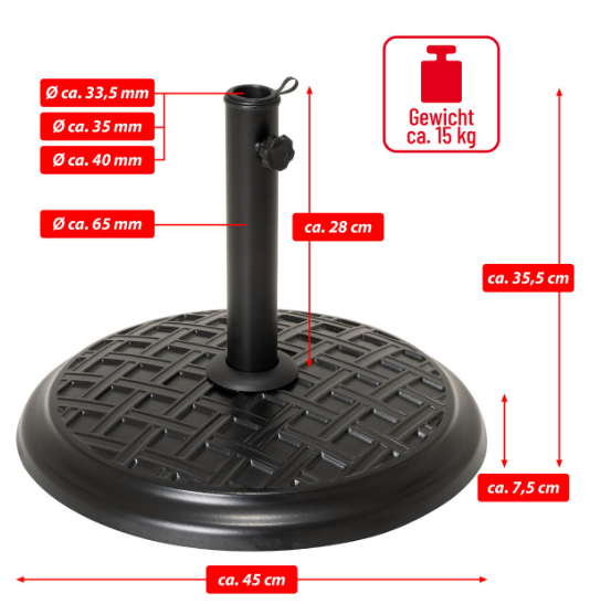 Tento robustný okrúhly podstavec slnečníka vyrobený z betónu plní nielen svoju funkciu bezpečného držiaka pre váš slnečník, ale aj dobre vyzerá a je tiež ľahký a praktický. Stojan je potiahnutý čiernou farbou a má ozdobný vzor. Vybavené aretačnou skrutkou, ktorá slnečník fixuje. Ideálne pre vašu terasu alebo balkón. Kruhový tanier má priemer cca 45 cm. Stojan je so svojimi 15 kg vhodný pre slnečníky do 2 m – nie pre konzolové slnečníky. Všimnite si aj naše ďalšie záhradné veci ako sú slnečníky, stoly, skladacie stoličky, stohovacie stoličky, lehátka, lavičky z kovu, plastu alebo dreva.