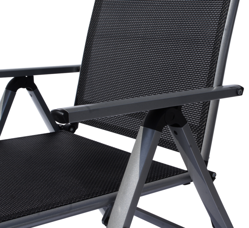 Polohovacie záhradné kreslo pre príjemné posedenie a odpočinok na Vašej záhrade. Hliníková kostra striebornej farby + textília 4x4 čierna farba. Textília je odolná proti vplyvom počasia. Kreslo je skladacie a ponúka 5 polôh.