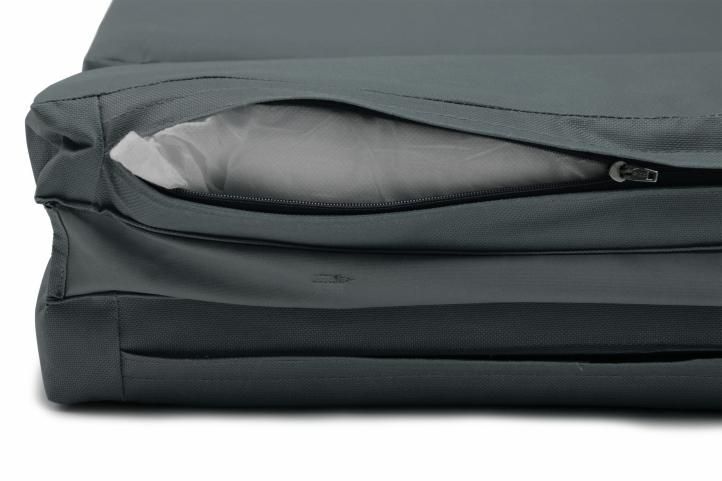 Kvalitné, štýlové polstrovanie na záhradné ležadlo v antracitovej farbe, nenáročné na údržbu. Poťah je vyrobený z robustného štruktúrovaného polyesteru. Podložka je navyše vybavená vankúšom v hlavovej časti. Vďaka skrytému všitému zipsu máte možnosť poťah kedykoľvek rozopnúť a vyčistiť. Elegantná podložka je veľmi pohodlná a premení Vaše záhradné ležadlo na útulný záhradný nábytok. Na zadnej strane podložky sú upevňovacie pruhy, s ktorými môžete podložku pripevniť k stoličke.