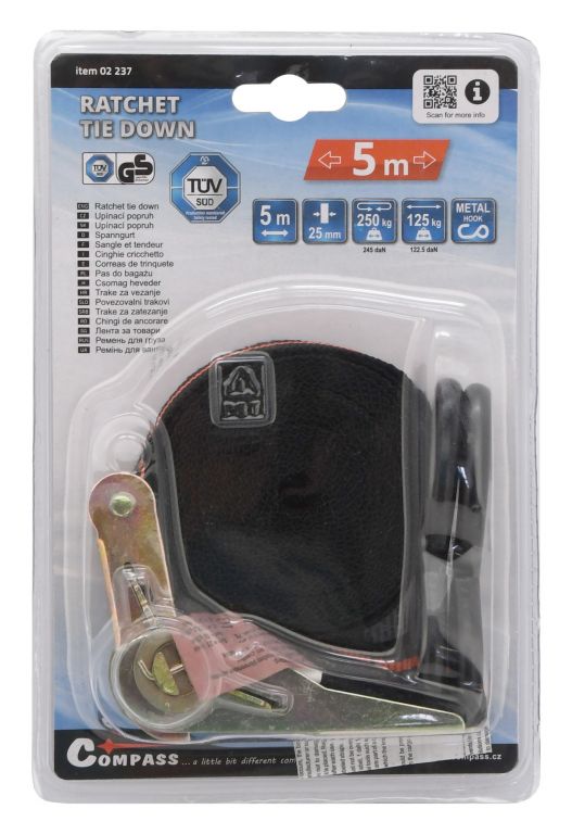 Upínací popruh s homologizáciou TÜV / GS na zaistenie predmetov, batožiny, alebo nákladu. Nesmie chýbať u žiadneho vodiča.