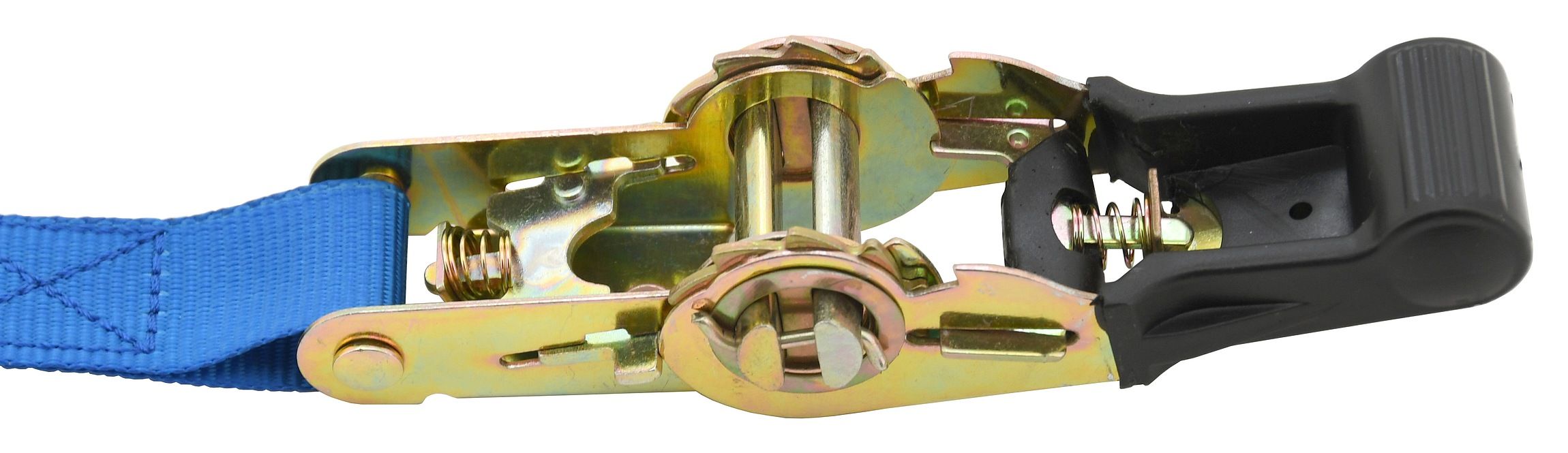 Račňa je celokovového prevedenia s odolným istiacim mechanizmom a poplastovanou rukoväťou pre pohodlnú manipuláciu a použitie. Popruh šírky 25 mm s dĺžkou 5 m sa vyznačuje pevnosťou v ťahu 700 kg (po obopnutí nákladu). Pri upínaní nákladu odporúčame používať plastové rohy alebo ochranné návleky. Bez použitia ochranných návlekov, alebo rohov dochádza k zníženiu pevnosti upínacích pásov a k opotrebovaniu popruhu.