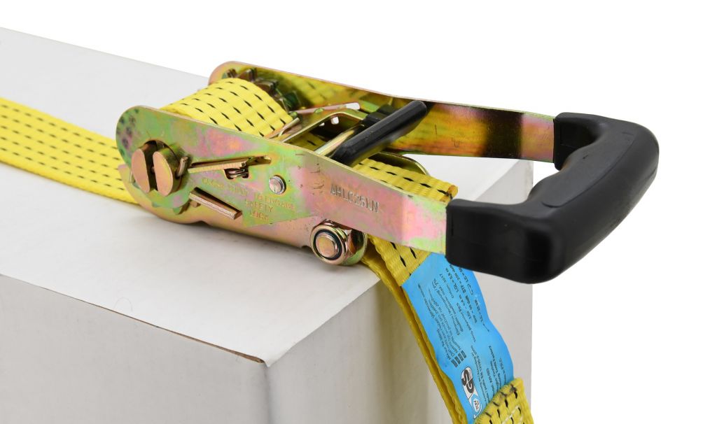 Račňa je celokovového prevedenia s odolným istiacim mechanizmom, opatreným plastovým madlom pre pohodlnú manipuláciu a ovládanie. Popruh šírky 50 mm s dĺžkou 6 m sa vyznačuje pevnosťou v ťahu 5000 kg (po obopnutí nákladu). Pri upínaní nákladu odporúčame používať plastové rohy alebo ochranné návleky. Bez použitia ochranných návlekov, alebo rohov, dochádza k zníženiu pevnosti upínacích pásov ak opotrebovaniu popruhu. Upínacie pásy nie je povinné evidovať, nemusia sa vykonávať revízie, ale odporúčame ich minimálne 1x ročne prehliadnuť riadne preškolenou a preskúšanou osobou.