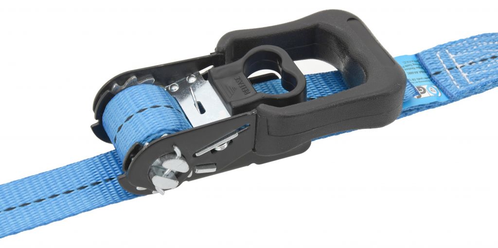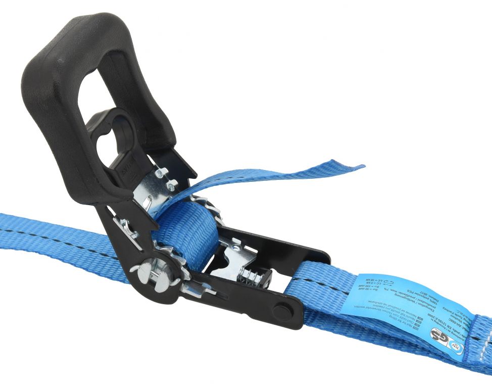 Na upnutie sa využíva celokovová račňa s istiacim mechanizmom. Konce popruhov sú osadené kovovými hákmi. Popruh tak nájde široké uplatnenie pri upevňovaní predmetov. Zaistite si správnu bezpečnosť nákladu.
