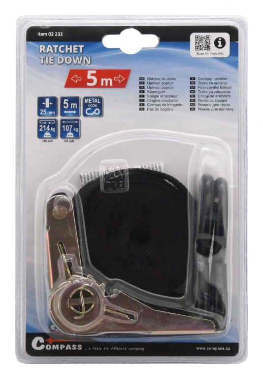 Na upnutie sa využíva celokovová račňa s istiacim mechanizmom a s hákmi na koncoch popruhov. Popruh tak nájde široké uplatnenie pri upevňovaní predmetov. Zaistite si správnu bezpečnosť nákladu.
