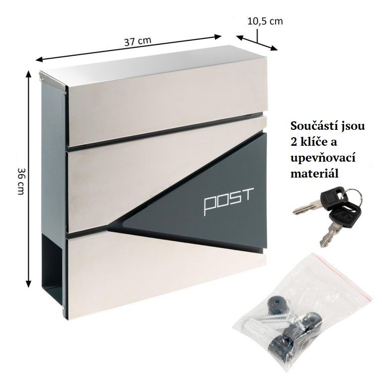 Poštová schránka s priehradkou na noviny, strieborná,2 kľúče