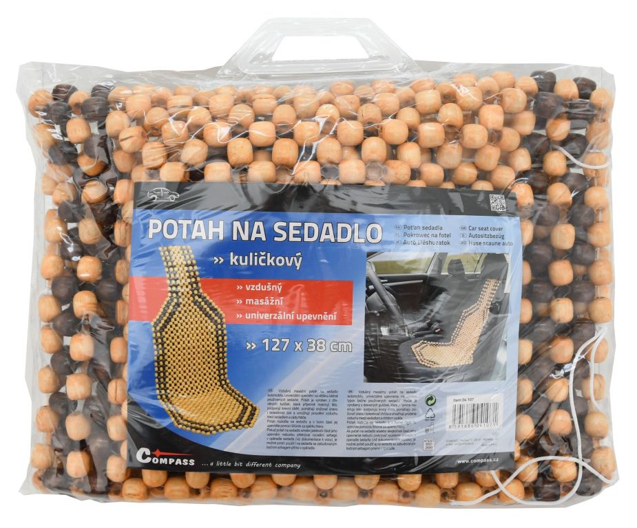 Poťah je vyrobený z drevených guličiek, ktoré príjemne masírujú telo, podporujú krvný obeh, pomáhajú znižovať únavu aj bolestivosť chrbta a umožňujú prúdenie vzduchu medzi sedadlom a chrbtom vodiča. Poťah rozložte na sedadlo a v hornej časti ho upevnite pomocou šnúrok za opierku hlavy. Pokiaľ poťah na sedadlo alebo akákoľvek časť jeho upevnenia nebudú prekrývať vyústenie airbagov v operadle sedadla, je možné poťah použiť aj na sedadlá so zabudovaným bočným airbagom priamo v operadle.