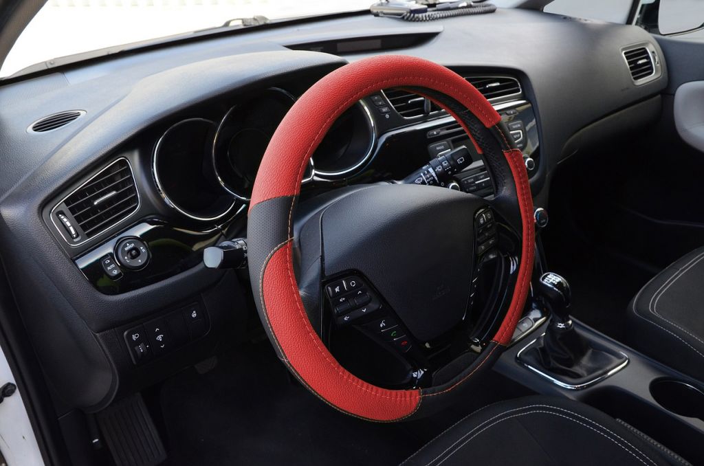 Štýlový poťah volantu s unikátnym prevedením, v pastelovo červenej farbe s čiernym podkladom a pastelovo červeným prešívaním. Poťah je príjemný na dotyk, ergonomicky tvarovaný s perforáciou pre uľahčený úchop. Poťah chráni volant pred opotrebením a zlepšuje riadenie.