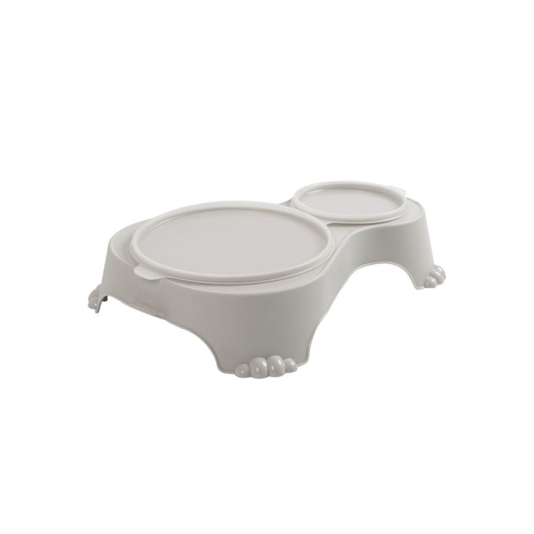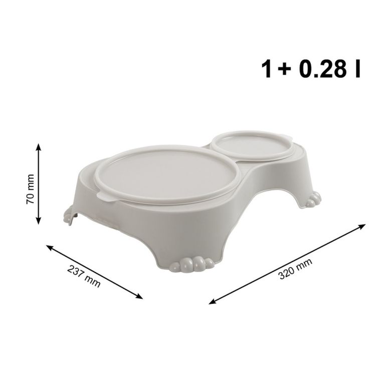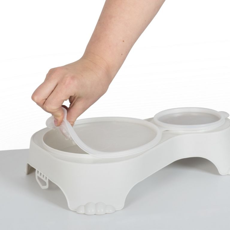 Dvojitá uzatvárateľná miska na jedlo a pitie pre domácich miláčikov. Praktická miska na krmivo s vekom je ideálna na prepravu jedla a pitia, či na uloženie zvyškov krmiva - vône, živiny a vitamíny v potravinách sú zachované a nedochádza k rozliatiu. Protišmykové nožičky. Možno umývať (misku aj veko) v umývačke riadu.
