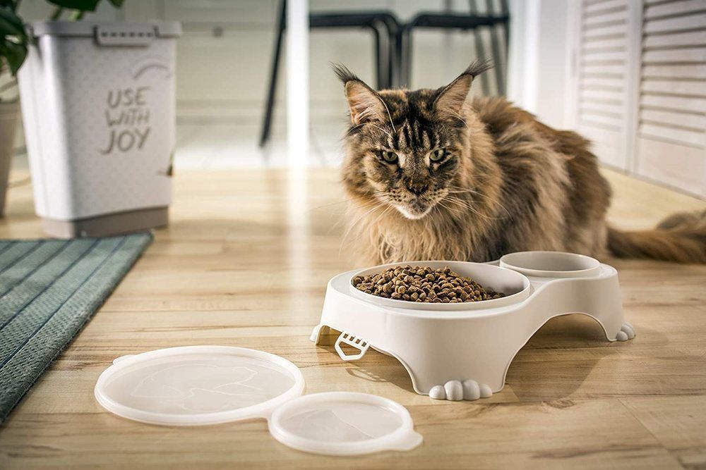 Dvojitá uzatvárateľná miska na jedlo a pitie pre domácich miláčikov.
