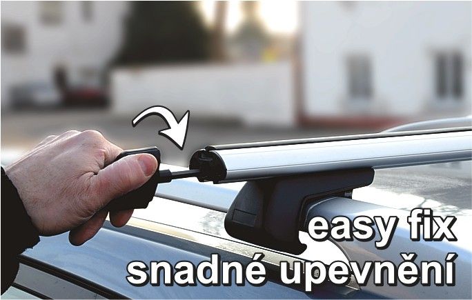 Jednoduché upevnenie - nevyžaduje žiadne náradie, stačí odomknúť koncovku nosiča, mierne ju vysunúť a jej otáčaním priečnik upnúť či povoliť.