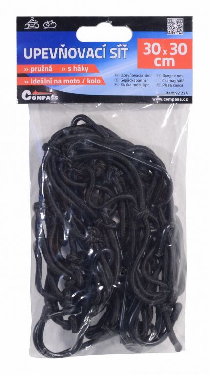 Pružná upevňovacia sieť veľkosti 30 x 30 cm, ktorá je pre ľahké upnutie vybavená háčikmi. Ideálna do každého dopravného prostriedku.