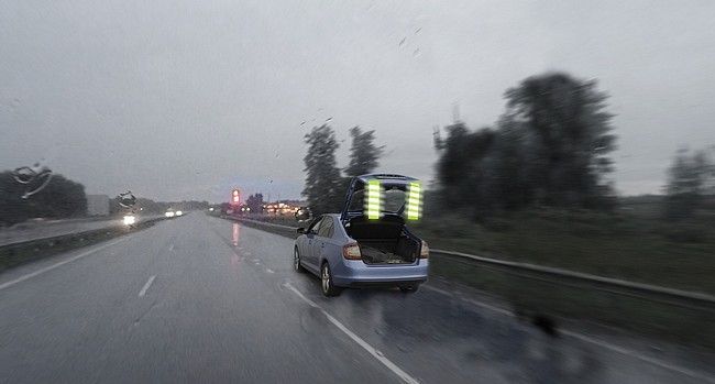 Ideálny doplnok k výstražnému trojuholníku - len sa pomocou magnetov prichytí na auto, ktoré je za zníženej viditeľnosti lepšie viditeľné.