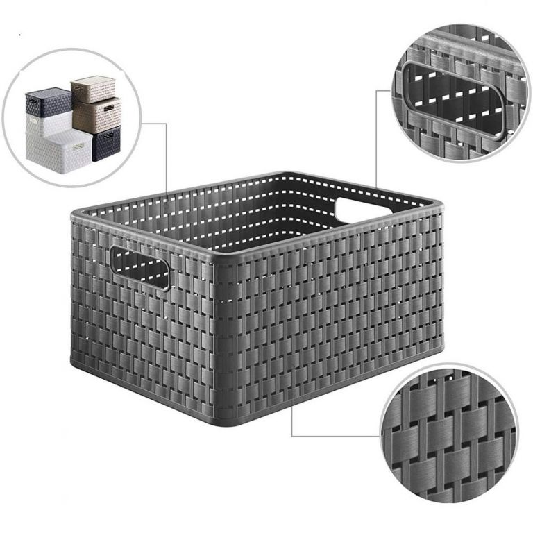 Plastový úložný box A4 v štýle ratanového výpletu s objemom 18 l ponúka široké využitie v celej domácnosti. Moderný design a kvalitné prevedenie. Úchytky na ľahké prenášanie.