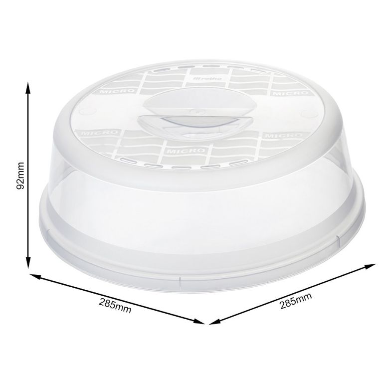 Plastový poklop určený na prikrytie pokrmov pri ohreve v mikrovlnnej rúre. Zabráni prskaniu ohrievaných potravín. Poklop má odvetrávacie otvory, čím sa zaistí bezpečná cirkulácia pary. Jednoduchá údržba a čistenie. Možno umývať v umývačke riadu.