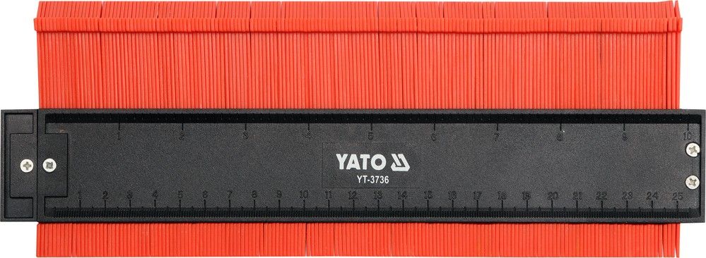Plastová obrysová šablóna šírka 260 mm na prenášanie tvarov profilov predmetov. Praktická pomôcka napríklad pre karosárov. Priložením lamiel šablóny k predmetu brity lamiel okopírujú obrys, ktorý je možné preniesť inam.