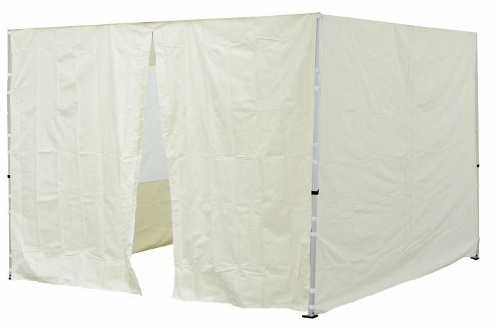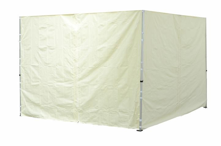 Tieto bočné steny je možné veľmi jednoducho pripevniť k Vášmu záhradnému stanu pomocou suchých zipsov a plastových háčikov. Okrem toho majú bočné steny gramáž 180 g / m², takže Vám zaručia ochranu pred miernym vetrom a dažďom (rovnako ako stany ich nemožno vystavovať zvýšeným poveternostným podmienkam). Bočná stena je vybavená zipsom uprostred steny, takže môže zároveň slúžiť ako vstupné dvere, ak chcete stan úplne uzavrieť.