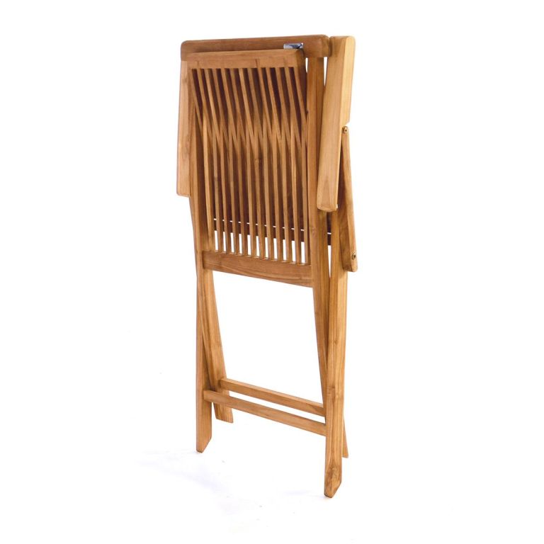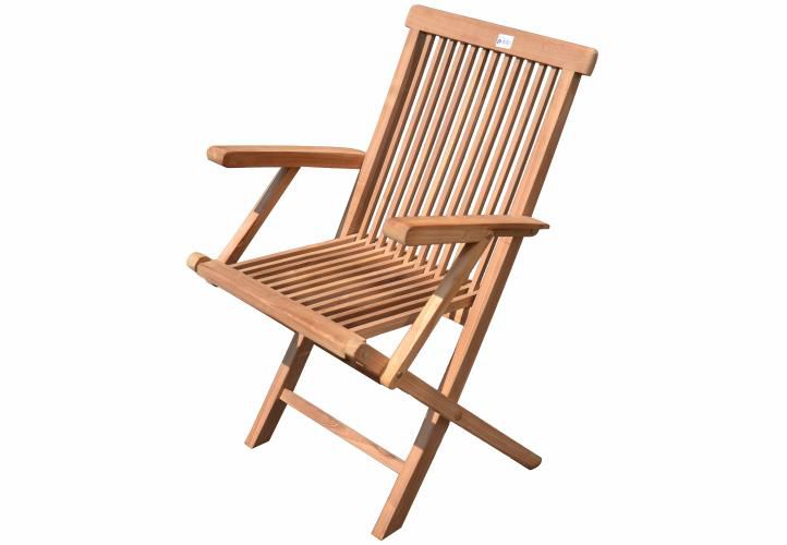 Masívna skladacia stolička s vysokým operadlom je vyrobená z teakového dreva.