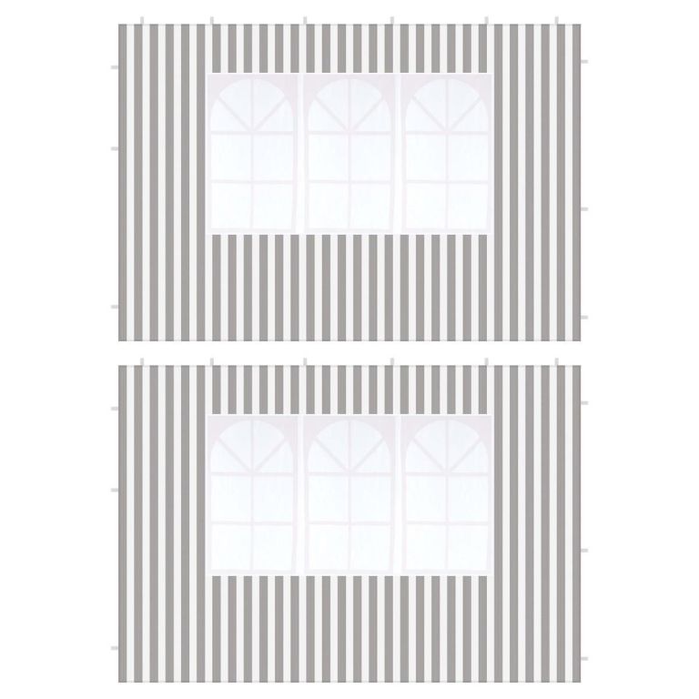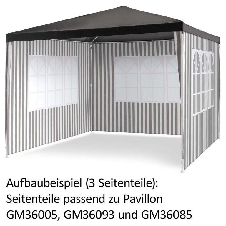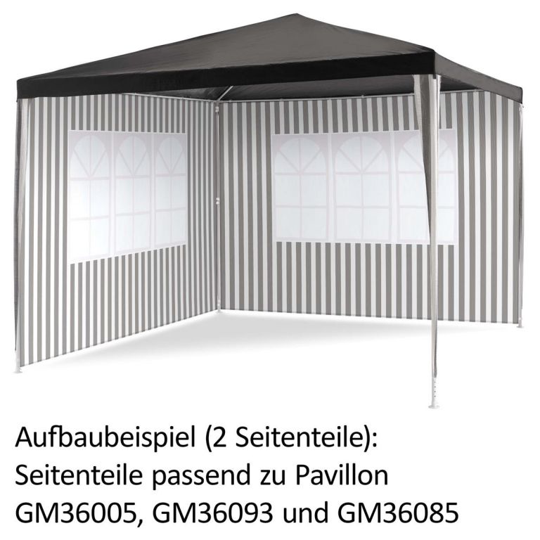 Sada dvoch nepremokavých bočných panelov s oknom pre PE pavilóny. K bočniciam sú pripevnené pásiky na suchý zips pre upevnenie na oboch stranách. Sada 2 bočných častí pavilónu je veľmi vhodná pre zamedzenie prievanu alebo nežiaducich pohľadov. Váš pavilón možno v priebehu niekoľkých krokov zmeniť na stan pod šírym nebom.
