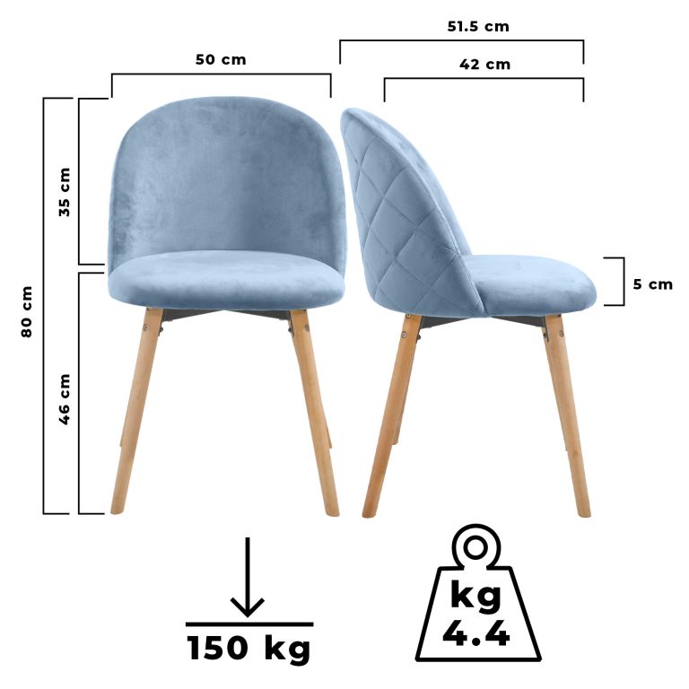 Sada jedálenských zamatových stoličiek, modré, 2 ks87,49 € -