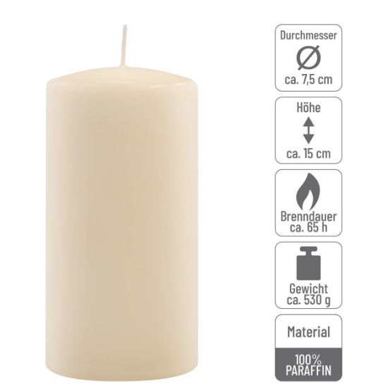 Sada stĺpových sviečok, 15 cm, Ø 7,5 cm, krémová, 2 ks