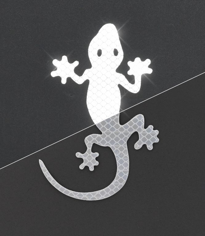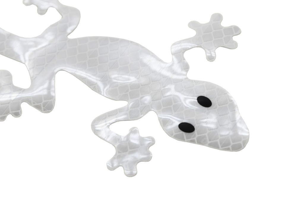 Samolepiaci dekor s reflexnými vlastnosťami v podobe Geckona (jašterice). Samolepka je vhodná na nalepenie na očistené neporézne povrchy. Dekor je možné nalepiť aj na mierne tvarované povrchy. Prilepenie je ľahké a rýchle.