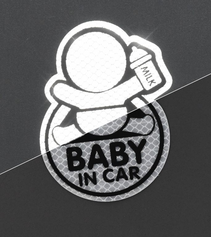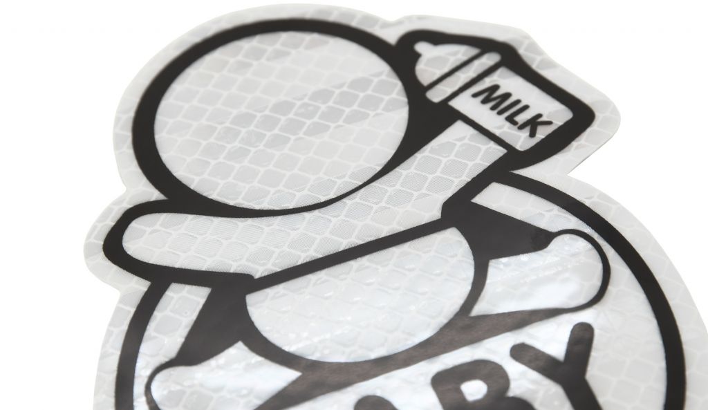 Samolepiaci dekor s reflexnými vlastnosťami upozorňujúci na dieťa vo vozidle.