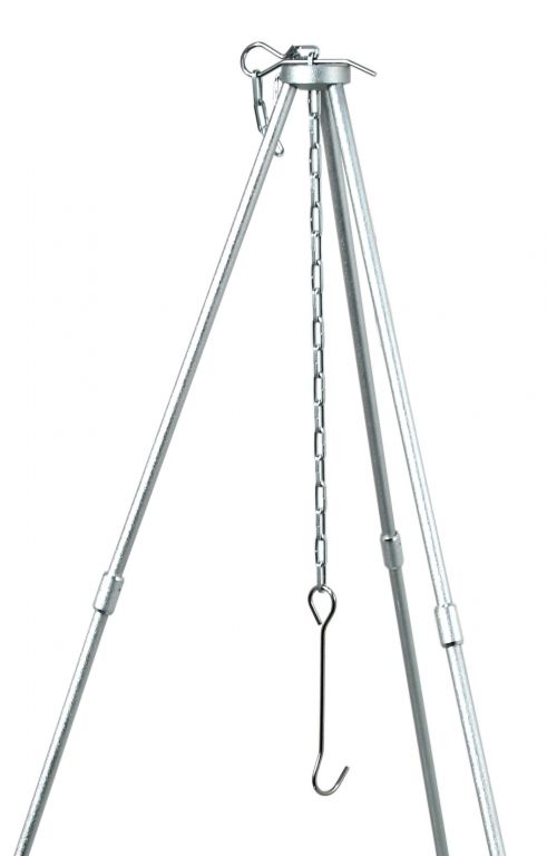 Praktická skladacia trojnožka je výborným doplnkom pre plynový varič, ale aj ohnisko. Zhotovená je tromi skladacími nohami z odolného hliníka a hákom zaveseným na reťazi s celkovou výškou 86 cm po zostavení. V zloženom stave má zariadenie hmotnosť 460 g a rozmery 34 x 7 x 3,5 cm, nezaberá teda veľa miesta a je tak možné mať ju so sebou kdekoľvek na výlete.