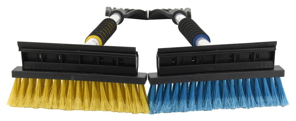 Jeden koniec je opatrený metličkou a gumovou stierkou. Na druhom konci rukoväte sa nachádza škrabka. Hliníkové zhotovenie rukoväte je opatrené penovým madlom pre pohodlný úchop. Produkt je ponúkaný v kombináciách farieb modrej a žltej s čiernou.
