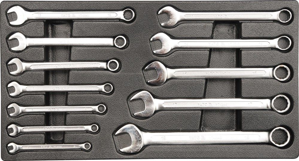 Vhodný doplnok a pomocník do rôznych mechanizačných zariadení. Kvalita značky YATO. Obsahuje gola sadu s kľúčmi 6 - 21 mm a tiež kladivo a žiletkový nôž. Kovový kufor je odolný proti náročnému prostrediu.