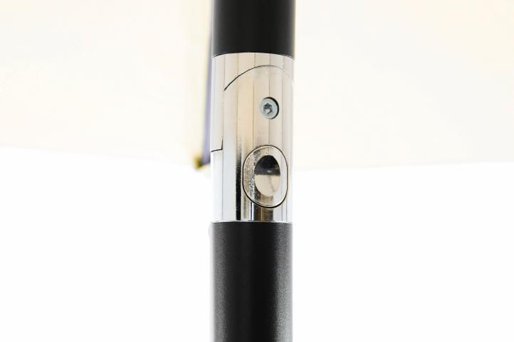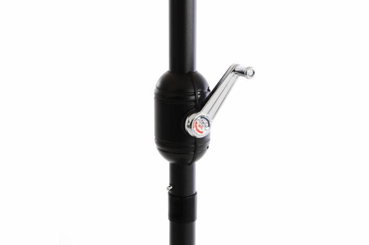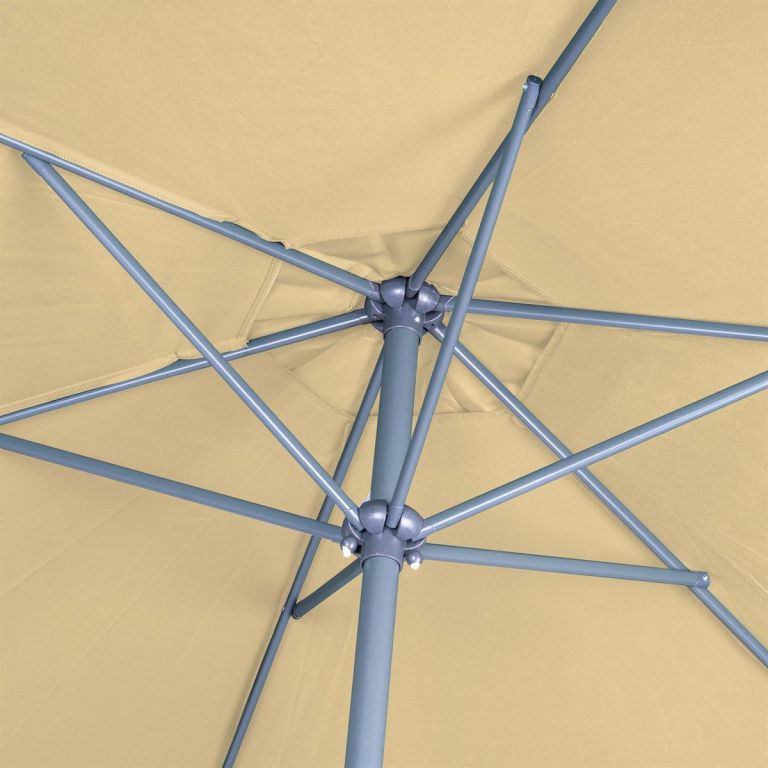 Slnečník môžete ohnúť, je totiž vybavený kĺbom vyrobeným z hliníka, preto môže byť naklonený v závislosti na polohe slnka. Tyč je rozdelená na dve časti, a preto je záhradný slnečník ľahko prenosný a skladný.