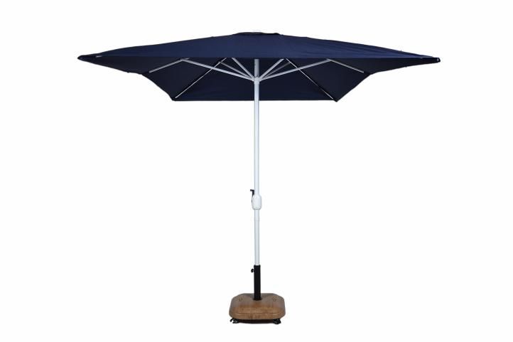 Tento slnečník v sýtej modrej farbe je vďaka svojmu obdĺžnikovému tvaru vhodný najmä na terasy a balkóny. Slnečník možno jednoducho zatvoriť alebo otvoriť vďaka integrovanej kľučke. Tkanina slnečníka je vyrobená zo 100 % polyesteru s gramážou, ktorá chráni tkaninu pred pôsobením vlhkosti a robí z nej kvalitný materiál s dlhodobou životnosťou. Vďaka tvaru konštrukcie je slnečník odolnejší proti miernym poveternostným podmienkam a už by sa nemalo stávať, že Vám vietor "obráti" slnečník a poláme konštrukciu.