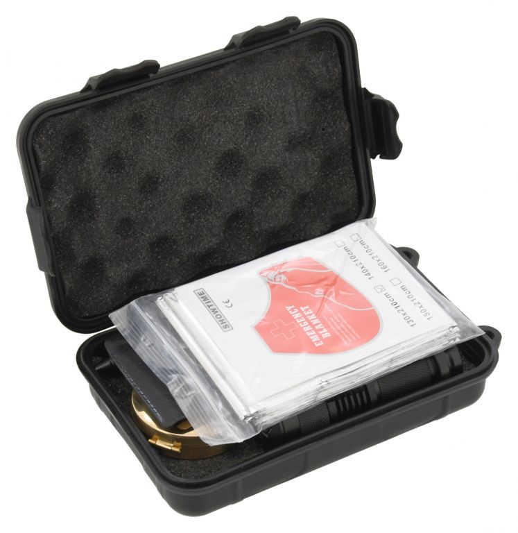 SOS sadu možno využiť ako záchranný nástroj alebo ako doplnok pre outdoor aktivity a camping. Sada pozostáva zo zatváracieho noža s čepeľou dĺžky 6,5 cm, multifunkčnej karty, píšťalky, kompasu s otočnou stupnicou, bivakovacej (izotermickej) fólie, rozmerného kresadla pre zapálenie ohňa, prívesku s LED osvetlením, celokovového pera s prierazným hrotom a LED svietidla napájaného AA batériou (batéria nie je súčasťou balenia) s nastaviteľným kužeľom vysoko výkonného svetla. Všetko je uložené v ochrannom uzatvárateľnom puzdre.