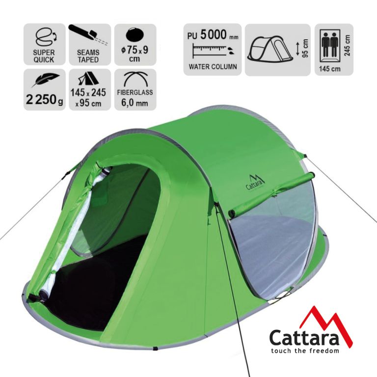 Stan so samorozkladacou konštrukciou super quick, s rozmermi 245 x 145 x 95 cm, vhodný pre 2 osoby.