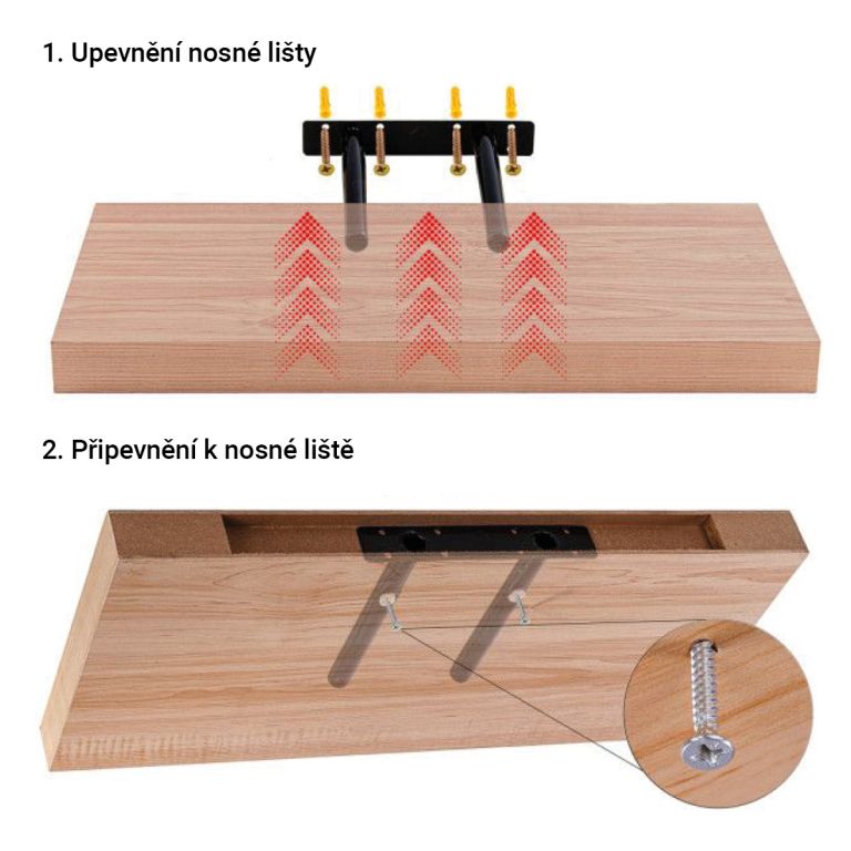 Oživte svoj interiér týmito policami. Ich uchytenie je na montovanom profile priamo do steny, tak nie je vidieť žiadne uchytenie. Drevovláknitá doska je testovaná podľa normy na škodlivé látky.