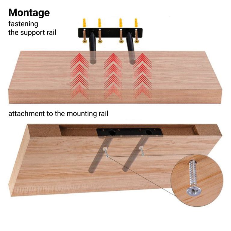 Upozornenie! Na polici sú zo spodnej strany dve malé dierky, ktoré slúžia na uchytenie spojovacieho materiálu ku konzole, na ktorej polica drží.